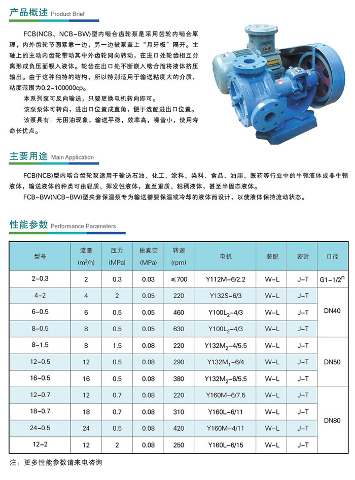 FCB(NCB、NCB-BW)系列內嚙和齒輪泵
