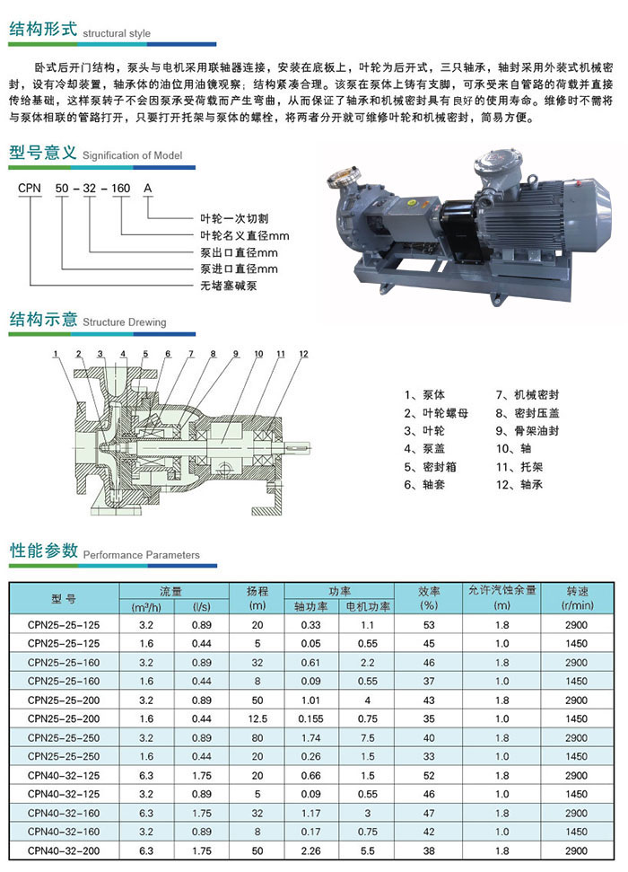 CPN系列耐高溫耐腐無(wú)堵塞堿泵