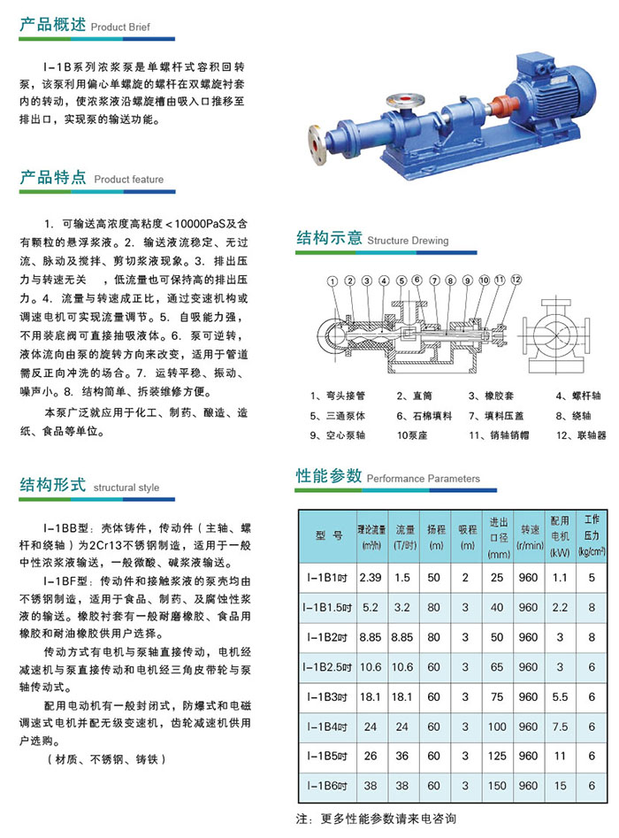 I-1B型螺桿(濃漿)泵